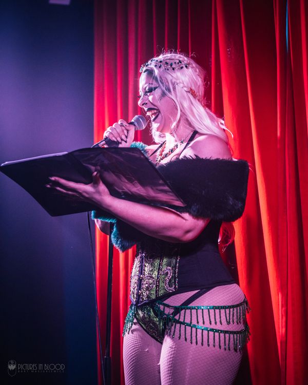 Roxi Kixx is also Hel Cabaret's host, who guides you all safely to the other side.